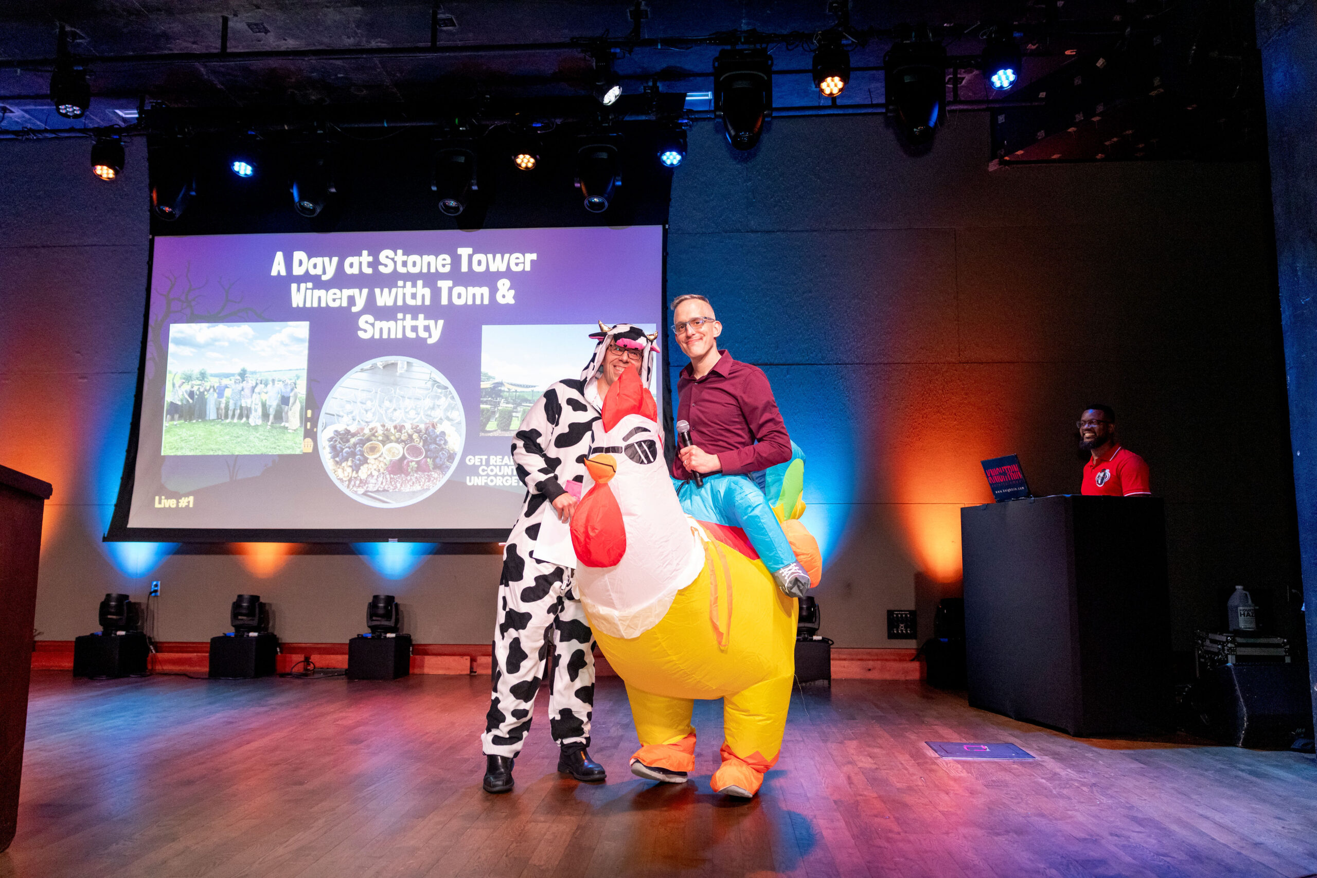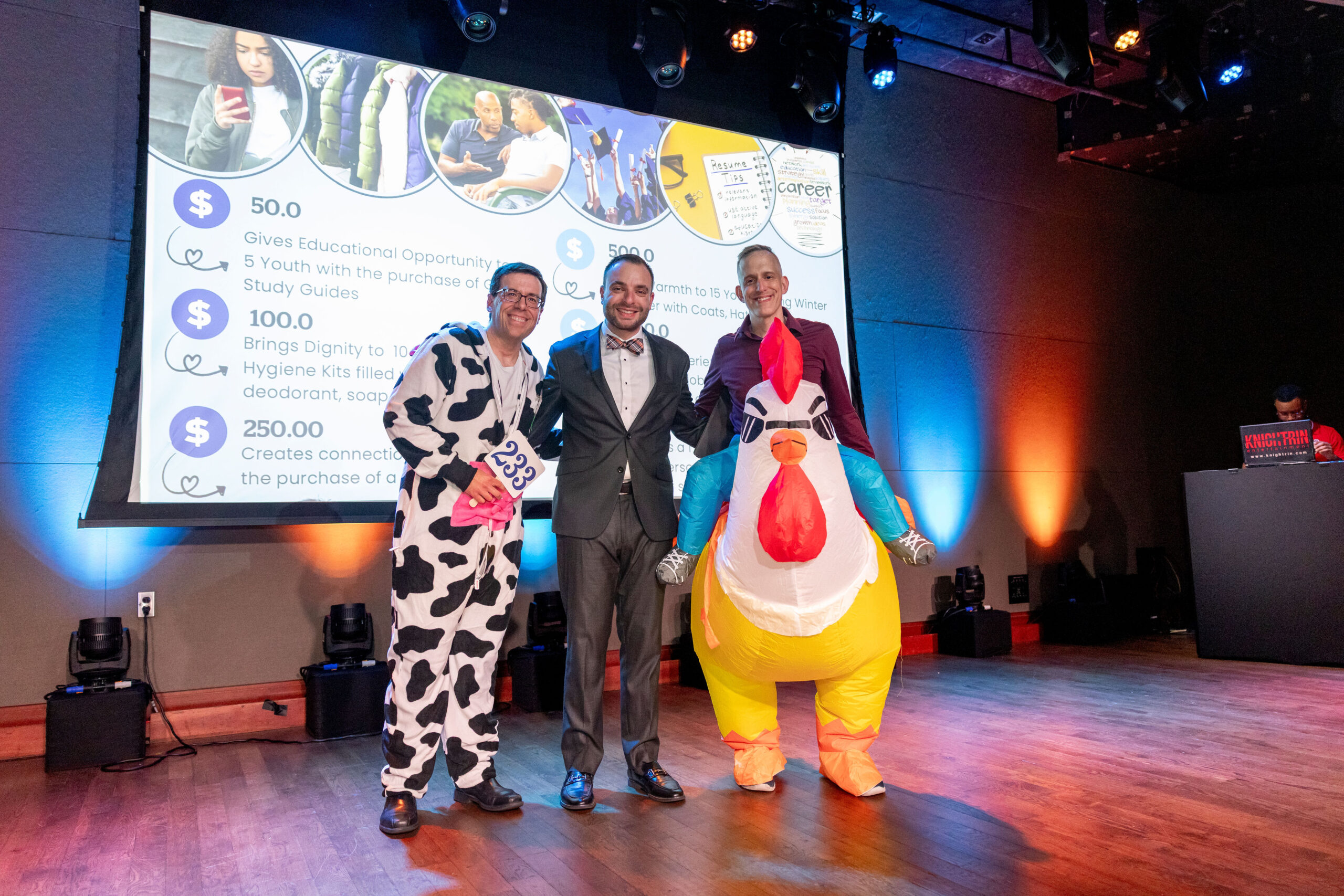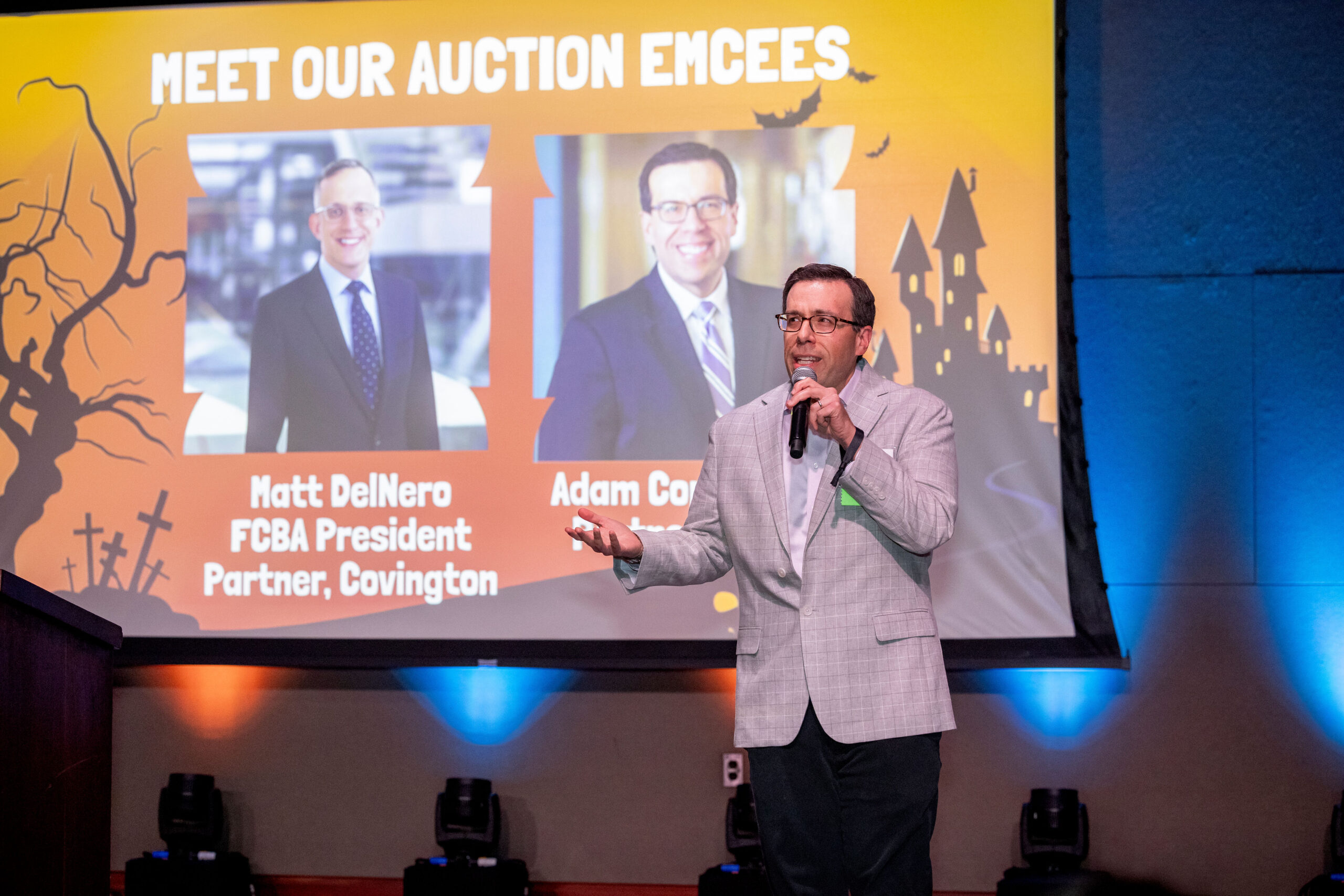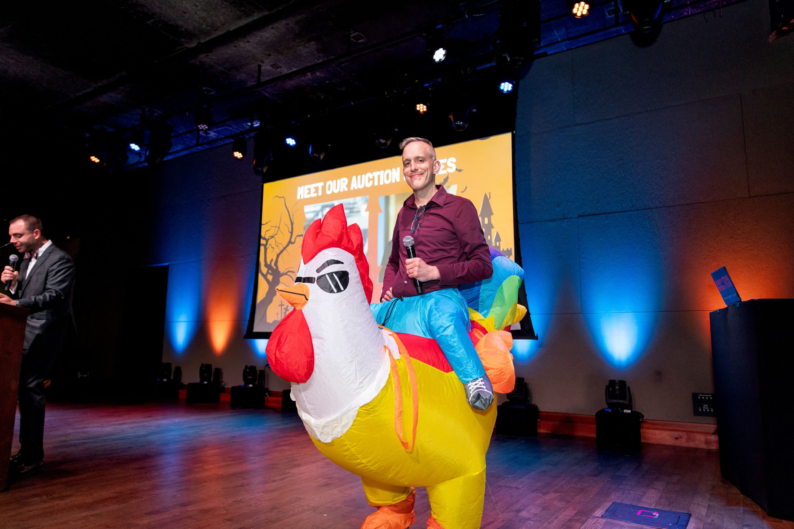 The festivities began with a surprise entrance from our celebrity emcees, FCBA President Matt DelNero and FCBA Legend Adam Copeland, who embraced the Halloween spirit by taking the stage dressed as farm animals, instantly setting a fun and lighthearted tone. From there, the night only got more exciting.